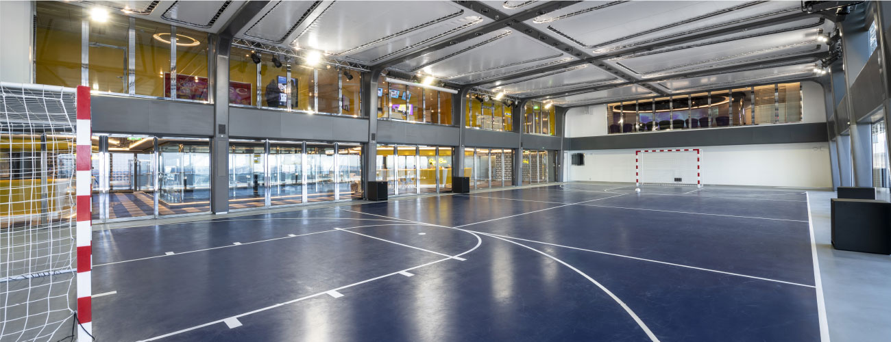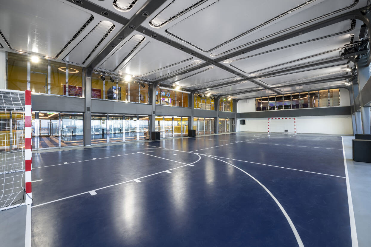 佔地390平方米,白天是揮灑汗水的運動場,打籃球、排球、網球都非常適合;夜晚變身燈光閃耀的舞池,邀您開啓絢麗的狂歡之夜